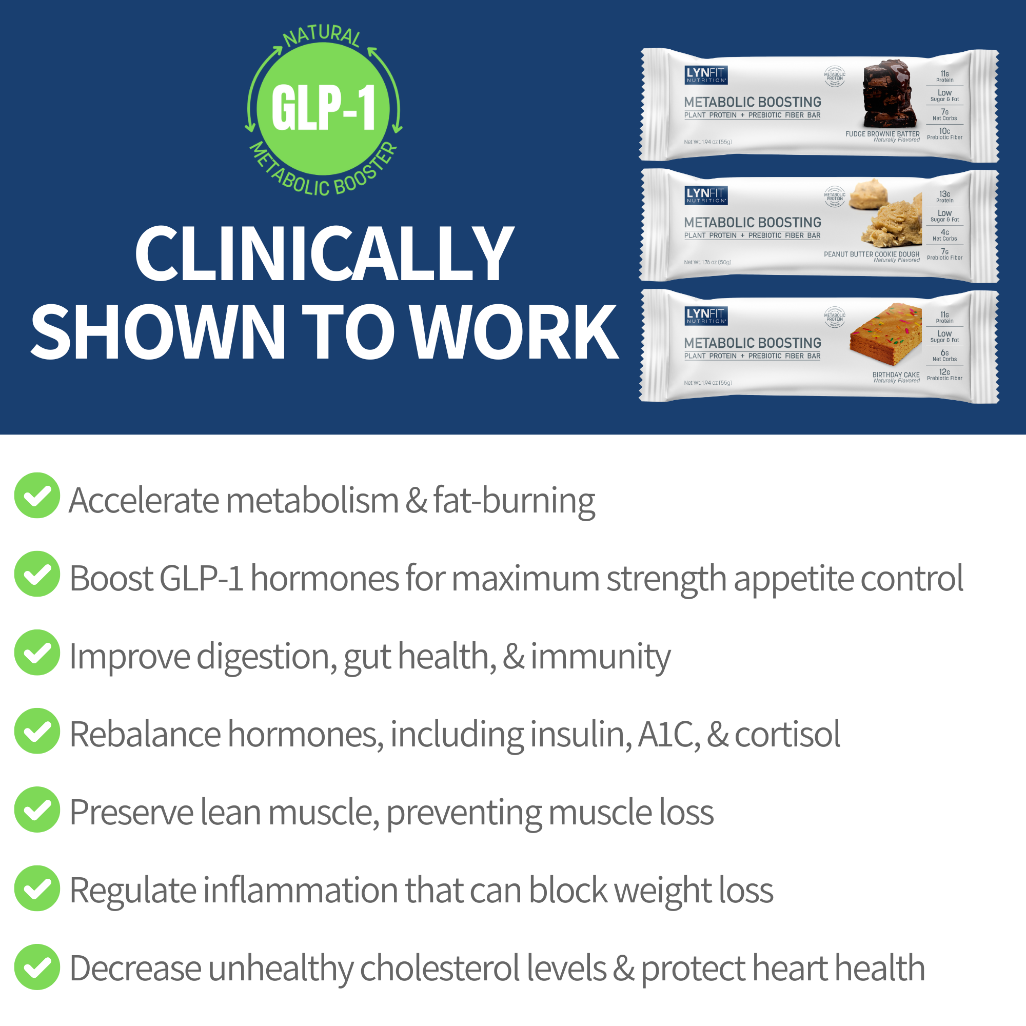 The LynFit Metabolic Boosting Plant-Based Protein Bar is a natural dietary GLP-1 agonist that can helps support pre-diabetes, type 2 diabetes, and obesity.