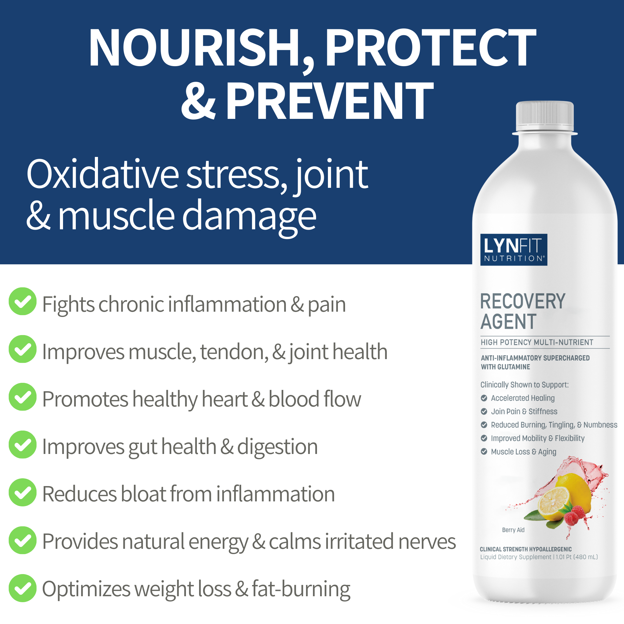 Recovery Agent Liquid provides the specific nutritional support your muscles, connective tissue, tendons, and joints need to improve your energy and mobility, from everyday aches and pains to injury or pre- and post-surgery.